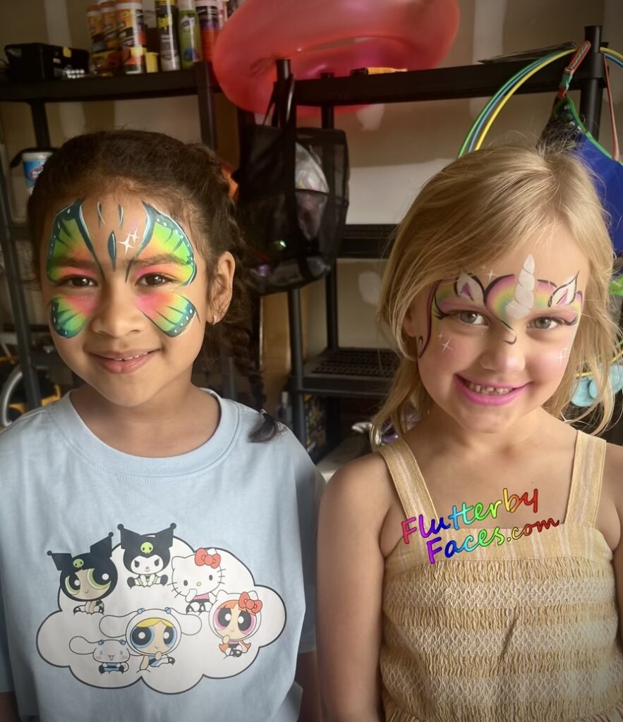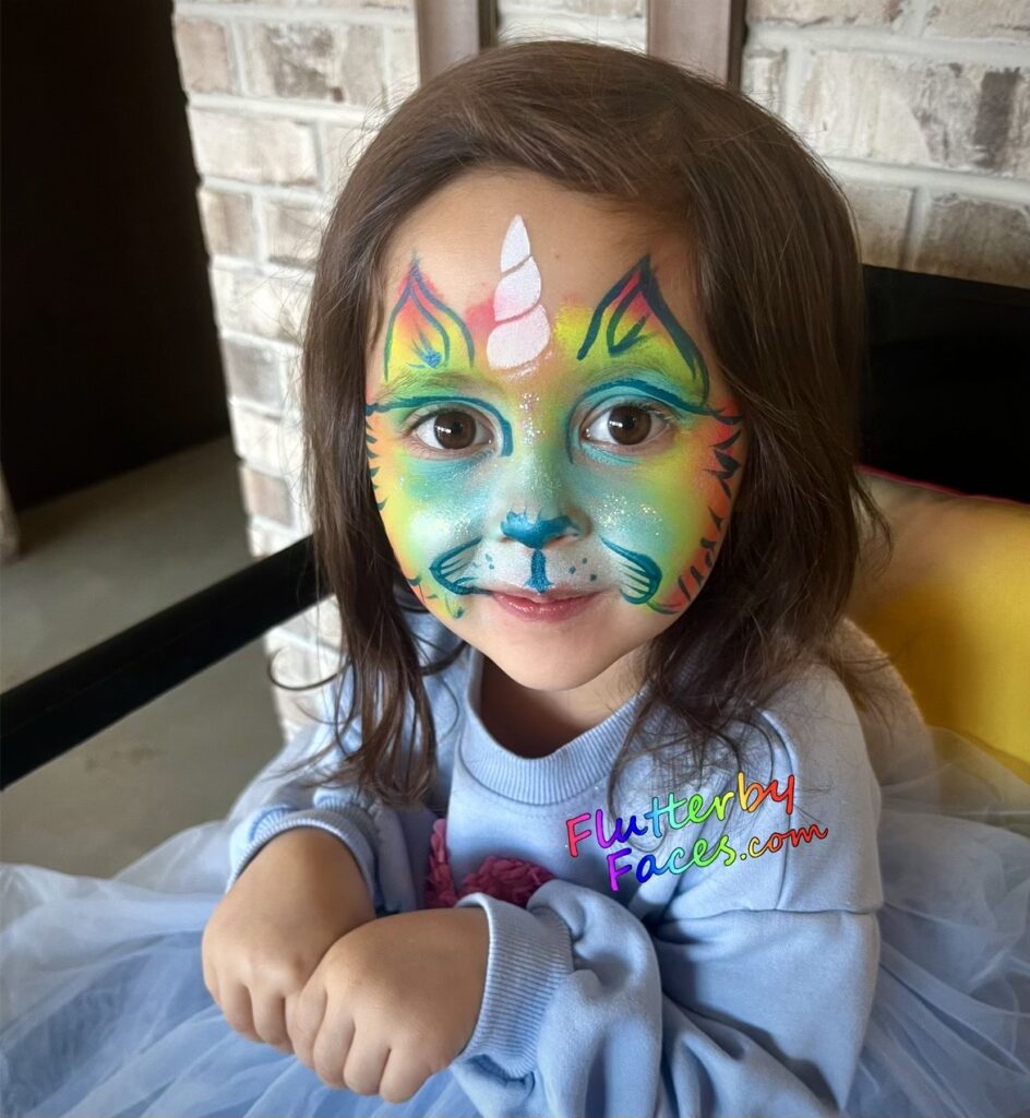 Face painting is an art, and we don’t use a strict menu of design choices. Face paint designs are only limited by your imagination. We know all the tips and tricks to deliver that wow factor that impresses parents and kids alike. Check out our gallery to get a sense of the inspired designs and smiling faces we deliver. You can also follow flutterbyfacesnc on facebook and instagram for up to date designs.