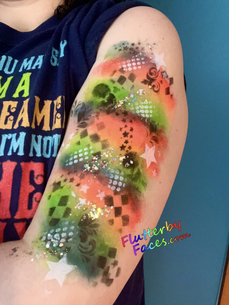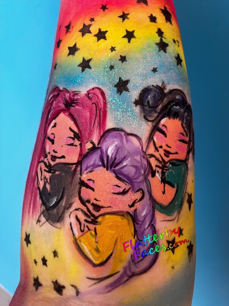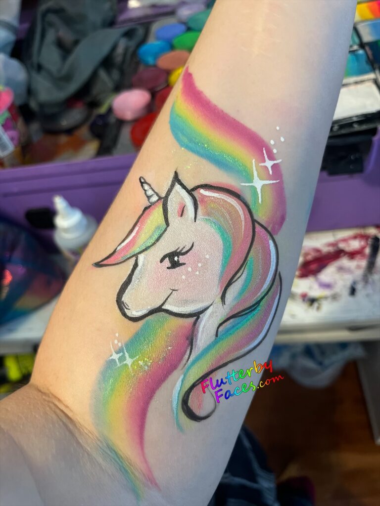 Face paint kits are fully stocked with the best professional face paint makeup, rainbow cakes, quality brushes, and cosmetic glitter. We use sanitizing water for rinsing brushes and hygenic practices.