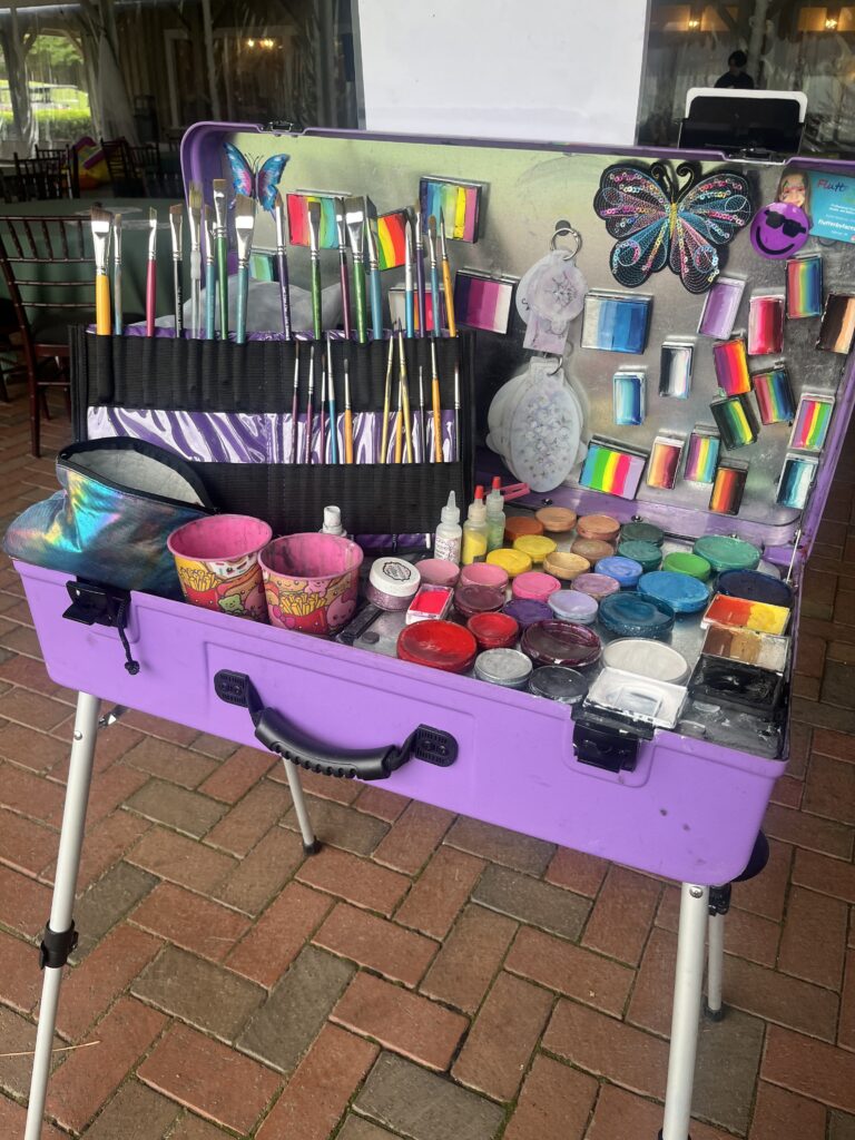 We bring everything to you. You don’t need a table, chairs, or water. Just a nice to place to set up. We do require shade in the summer. We are experienced face painters and ready to handle all the twists and turns that may arise.